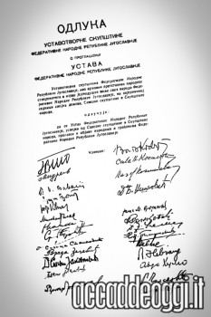 Viene promulgata la nuova costituzione jugoslava per una repubblica popolare federativa. I 139 articoli che regolamentano il nuovo stato per il quale è stata assunta la denominazione di Repubblica Federativa Popolare di Jugoslavia, si basano sulla Costituzione sovietica del 1936.