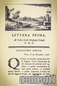 (Nella foto: la lettera di Alessandro Volta a padre Carlo Giuseppe Campi dal libro "Sull'aria infiammabile nativa delle paludi".